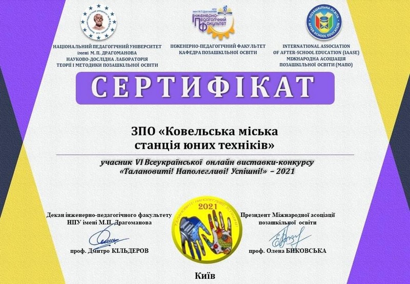 Понад 5000 заявок надійшло на VI Всеукраїнську онлайн виставку-конкурс «Талановиті! Наполегливі! Успішні!», в тому числі і від вихованців гуртків «Бісероплетіння» (Тетяна Дунай) та «Історико-технічного стендового моделювання» (Андрій Кікавський). Ярослава Тимчак і Анна Якимчук відзначені дипломами за зайняте І місце. Ковельська СЮТ отримала Сертифікат учасника.