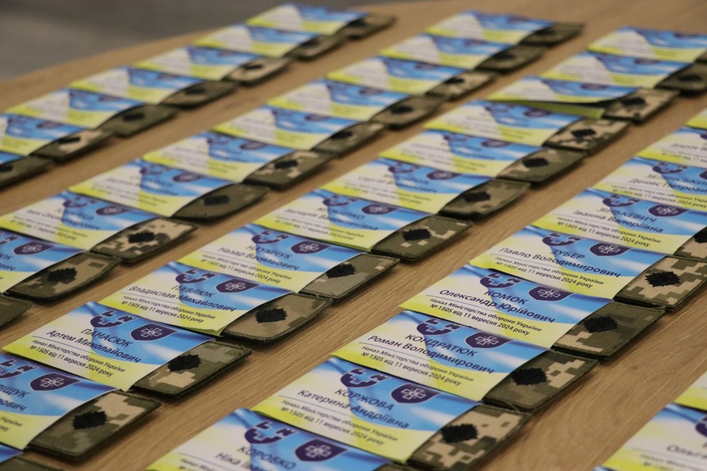 Майже 70 молодших лейтенантів та лейтенанток отримали сьогодні військові погони. Їх вручили воїни 100-ї ОМБР. Серед тих, хто закінчив військову кафедру ЛНТУ, – і перший заступник голови обласної ради Юрій Поліщук.