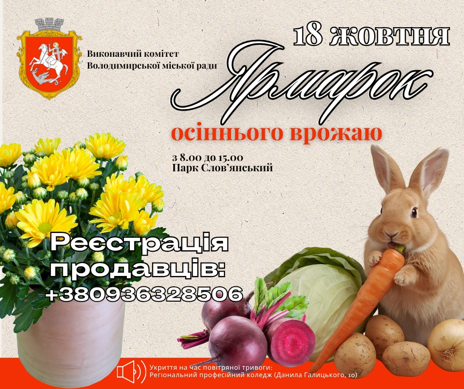 18 жовтня, на території парку «Слов’янський» у Володимирі відбудеться традиційний ярмарок осіннього врожаю.