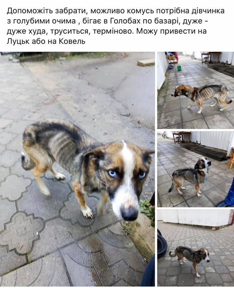 “Декілька днів тому Волинь сколихнула публікація, де йшлося про надзвичайно виснаженого голодом песика с дивовижно блакитними очима. Безліч репостів, багато коментарів, у яких і охочі забрати бідолаху, та після чергової переписки, автор посту відписує одній з дівчат-волонтерок, та на ранок вирушаємо за залишками собаки. Адже інакше кістки обтягнуті шкірою назвати просто неможливо. І ці очі, нереального кольору, сповнені смутку, відчаю, та у глибині усе ж таки читається надія на краще.
