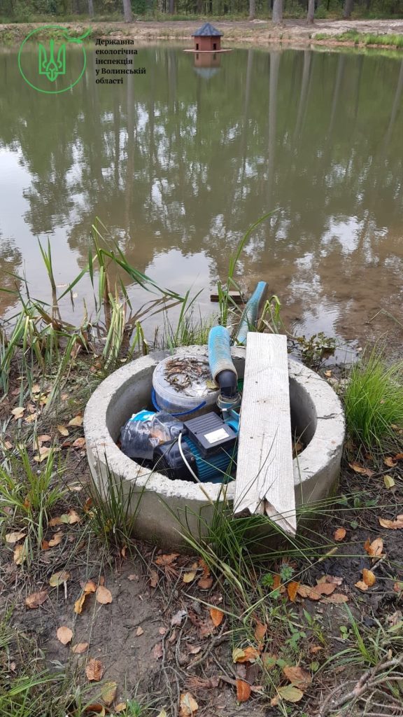 Під час обстеження на території Ківерцівського лісництва, квартал 28, виділ 21, що частково входить до меж природно-заповідного фонду Національного парку «Цуманська пуща», фахівці виявили самовільне будівництво водойми площею близько 0,20 га. Поряд з водоймою облаштували свердловину з якої, ймовірно, здійснюється водозабір, для наповнення водойми.
