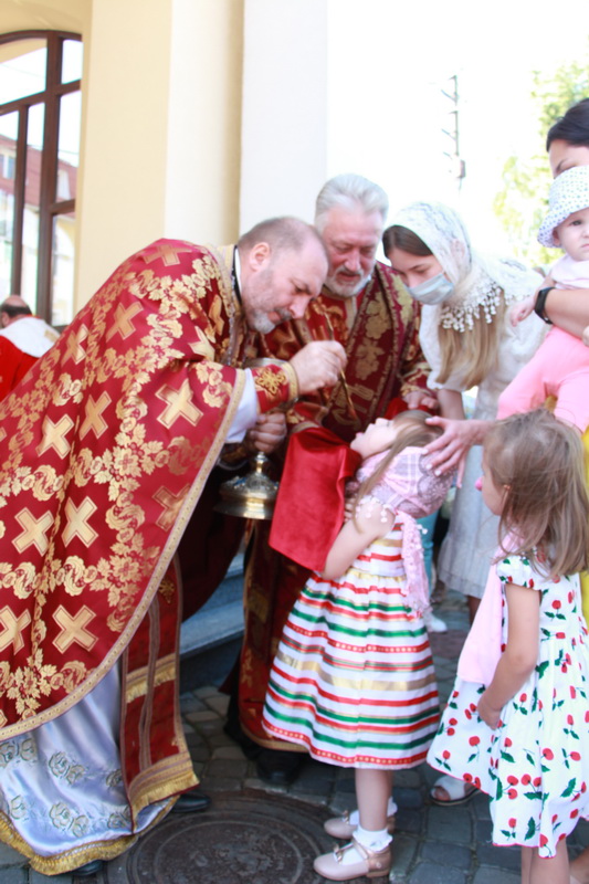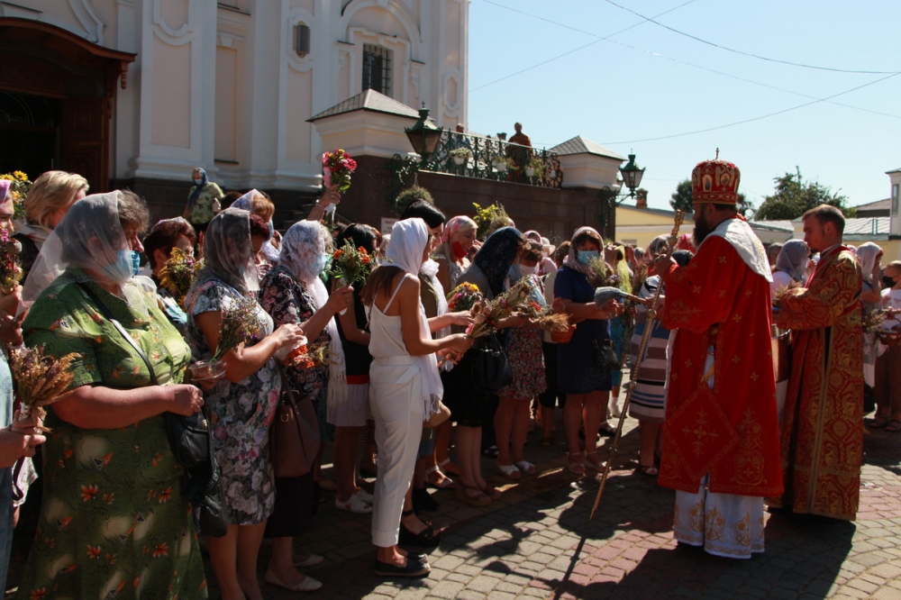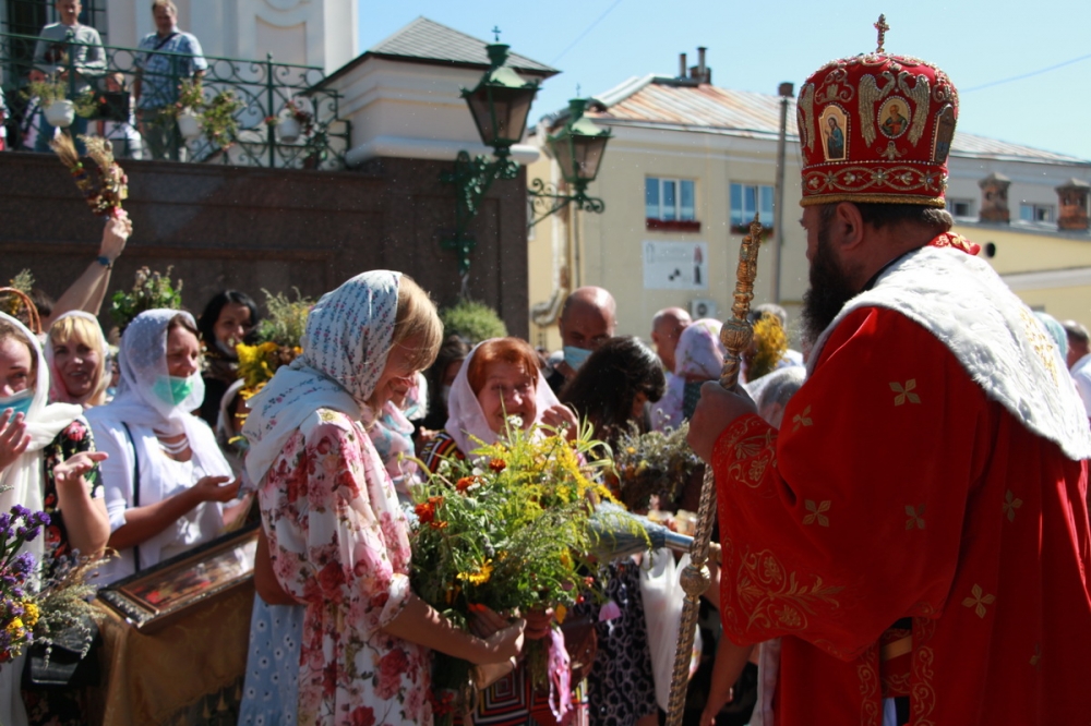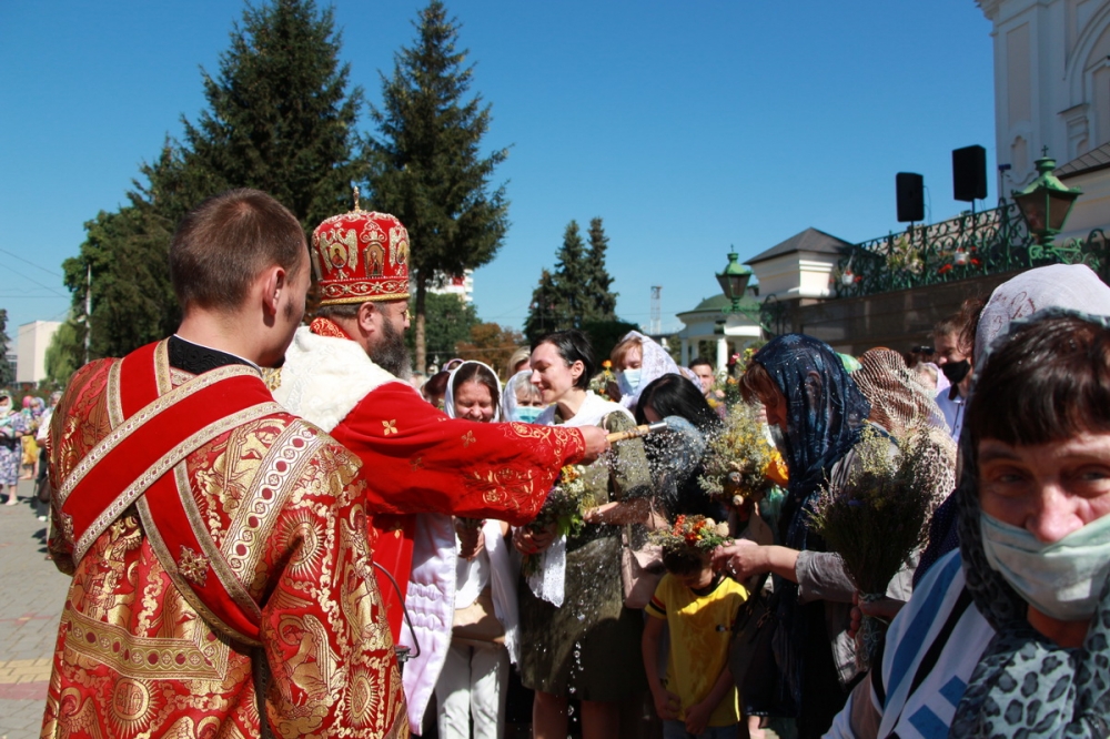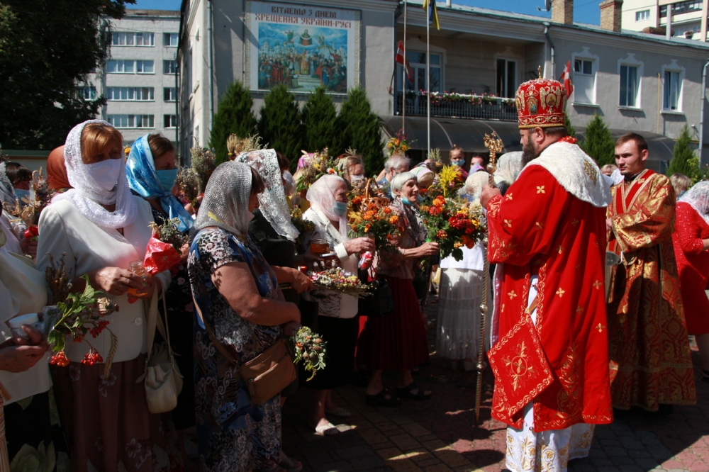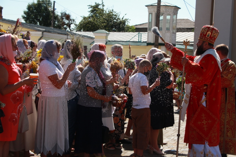 А на завершення Служби, архієрей рясно окропив свяченою водою прихожан та зілля, квіти, мак, мед, які вони принесли.