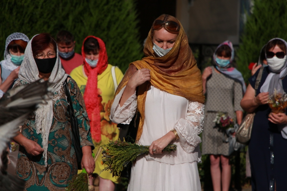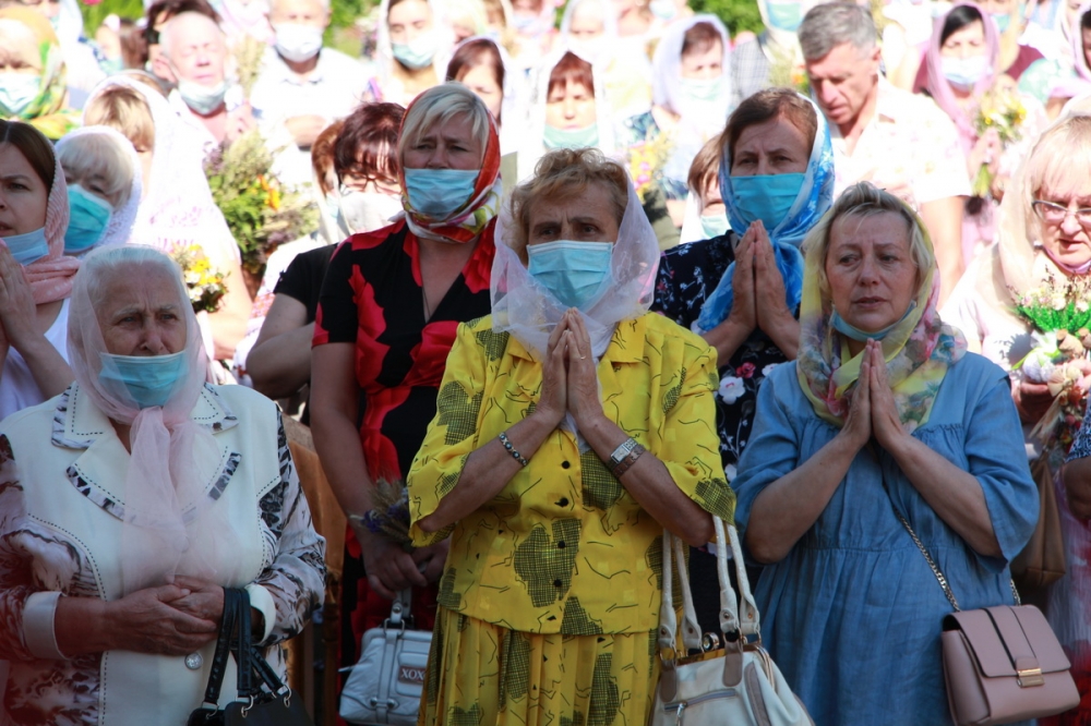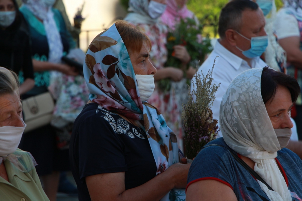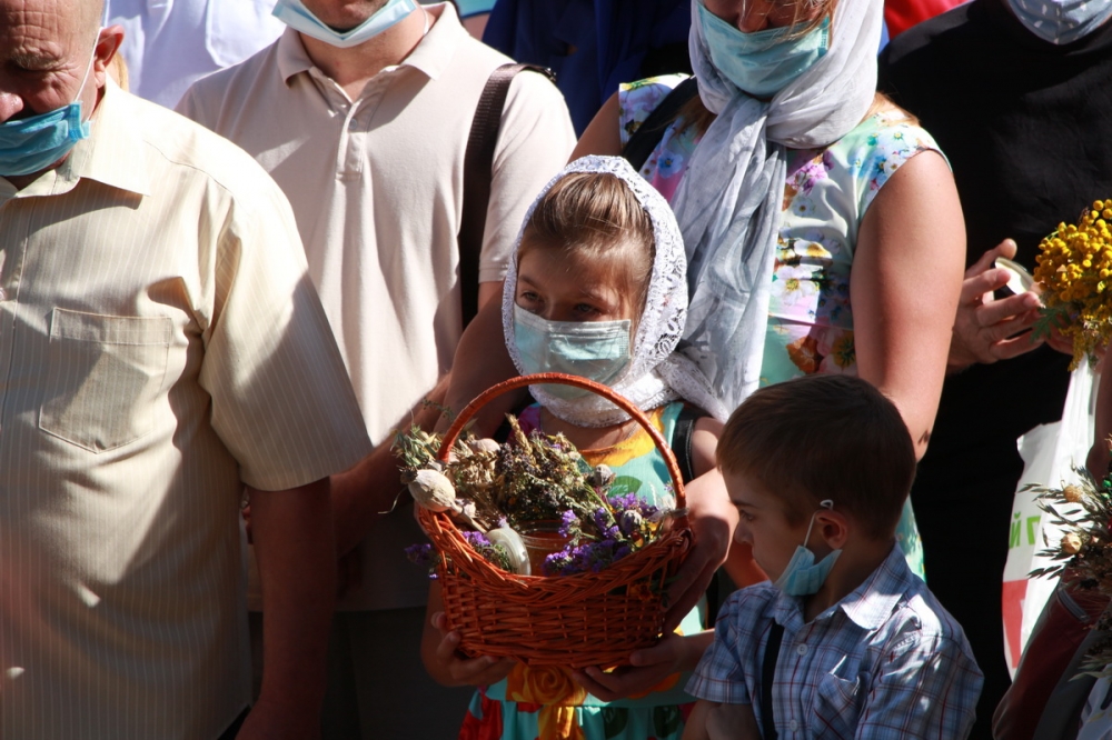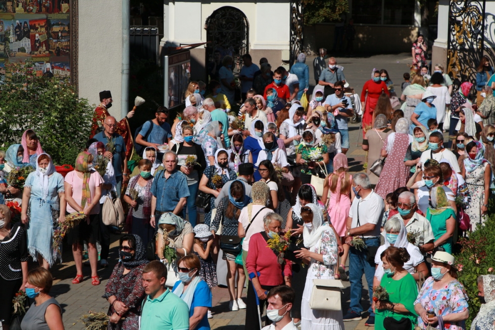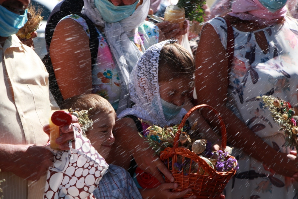 А на завершення Служби, архієрей рясно окропив свяченою водою прихожан та зілля, квіти, мак, мед, які вони принесли.