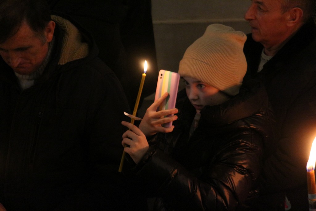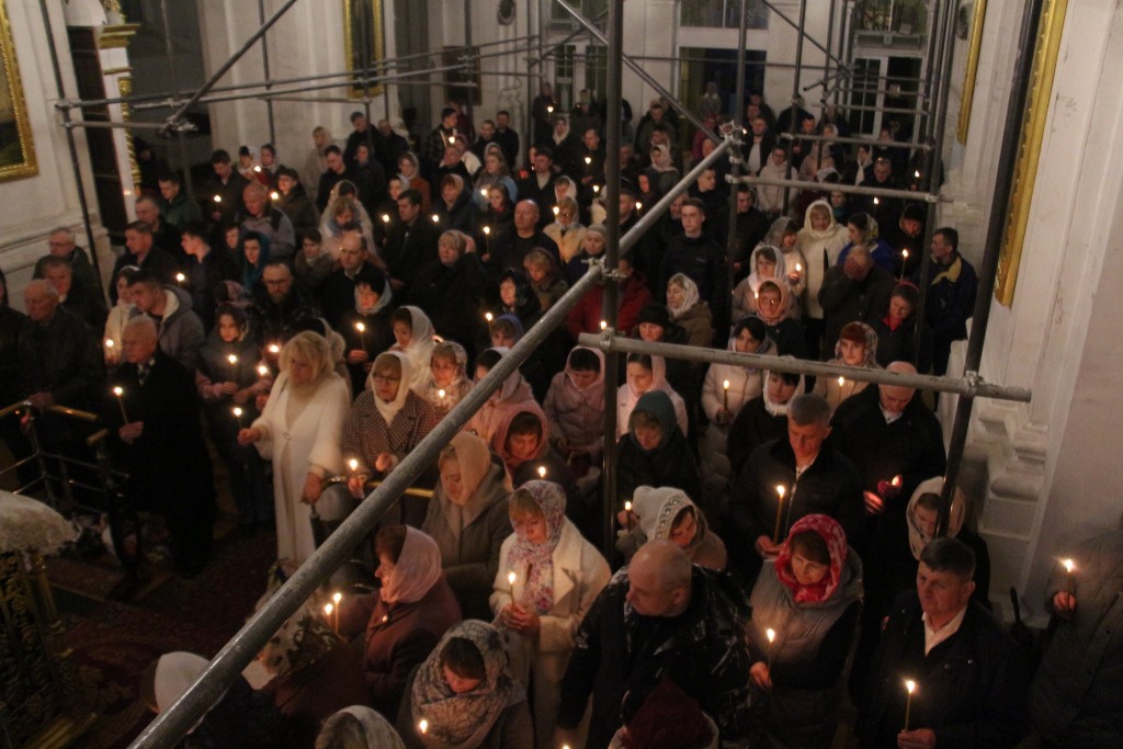Із храму велася трансляція, тож усі могли долучитися до служби, залишаючись удома. Її коментував ігумен Никодим (Смілий), намісник братського монастиря Воздвиження хреста Господнього.