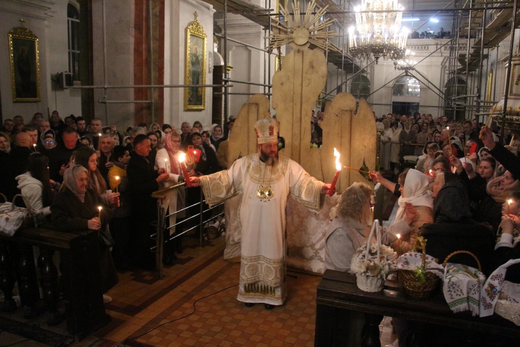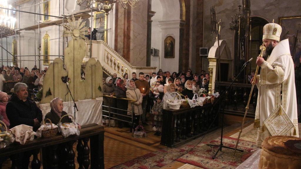 У своєму великодньому вітання архіпастир зазначив, що сьогоднішнє святкування з присмаком гіркоти, бо ми проходимо Голгофські страждання. Ми віримо, що скоро наступить мир і перемога. Світле Христове Воскресіння – це найбільша любов Господа до людини. І хай ця Божа любов увінчається перемогою України над ворогом. Після богослужіння і закінчення комендантської години відбулося освячення великодніх кошиків на соборному майдані. Освячення тривало й протягом попереднього дня.