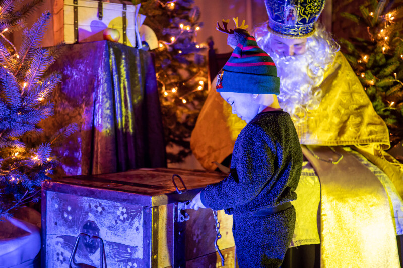 Тут відвідувачів зустрічали помічники Миколая, пропонували відчути атмосферу підземелля із запахами хвої та атмосферними мелодіями. Маленькі відвідувачі розповідали про свої мрії, куштували смаколики та пили какао, займалися творчістю, фотографувалися, гралися і, звісно, спілкувалися зі Святим Миколаєм про “сокровенне”.