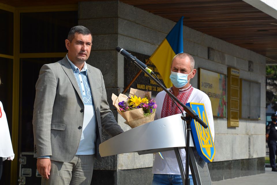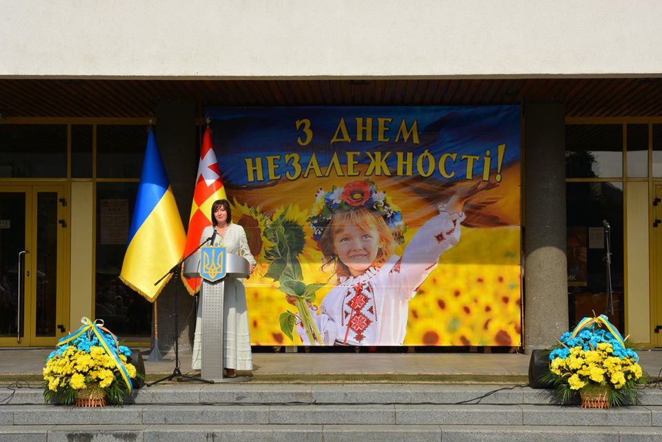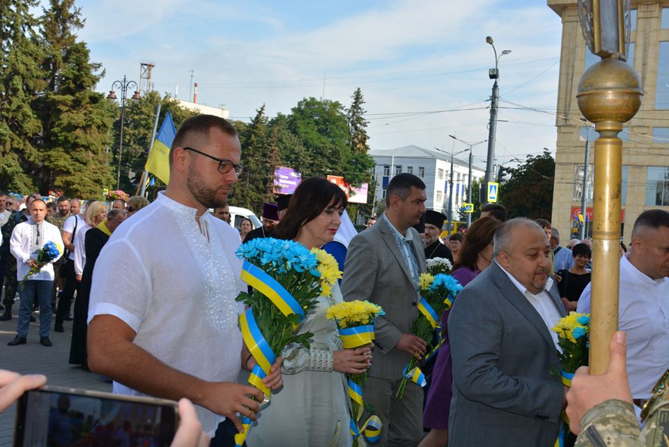 По тому, біля приміщення облмуздрамтеатру ім. Тараса Шевченка розпочались урочистості. Зі словами вітань до лучан та гостей міста звернулись перший заступник Луцького міського голови Григорій Недопад, заступник голови ОДА Анатолій Костик та голова обласної ради Ірина Вахович. Вона передала вітання від усього депутатського корпусу облради та зауважила, що сьогодні ми святкуємо не просто День народження нашої держави, а відзначаємо – символічний день, який об’єднує наше минуле і наше майбуття.