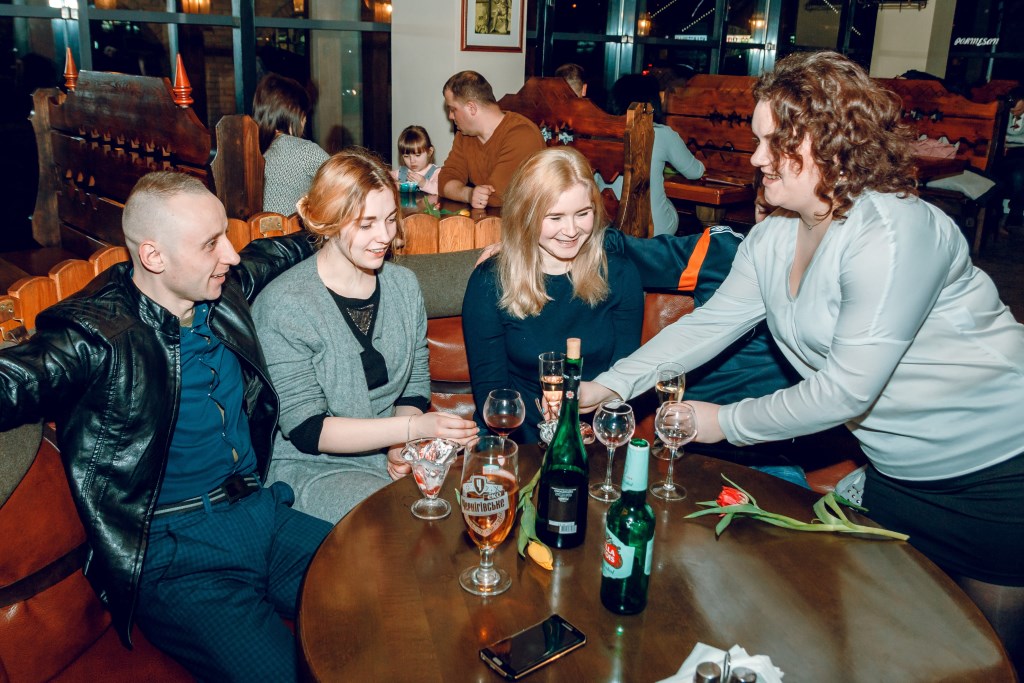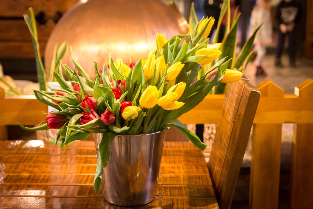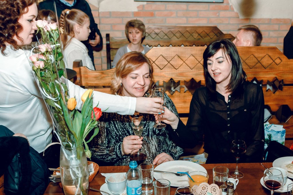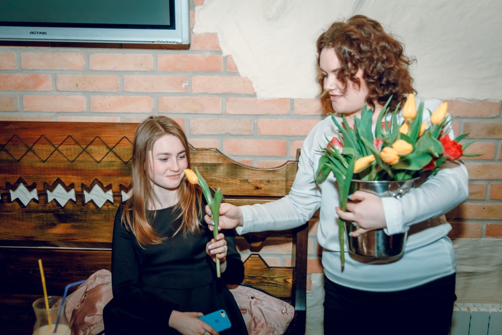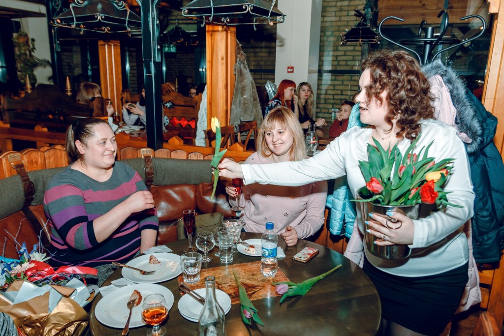 Для гостей ресторації «Брама» адміністрація підготувала сюрприз. Усім жінкам ввечері 8-го березня дарували квіти та частували ігристим.