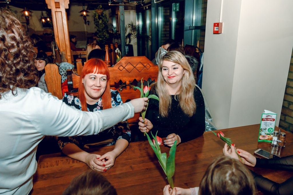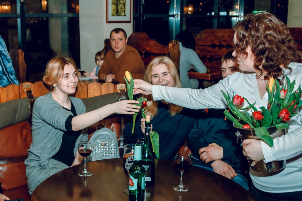 Так, усіх жінок, які прийшли провести вечір 8-го березня у цьому закладі вітали весняними квітами та пригощали бокалом ігристого. Окрім того, 8-9 березня гостям закладу пропонують заповнити анкету, аби виграти романтичну вечерю на двох.