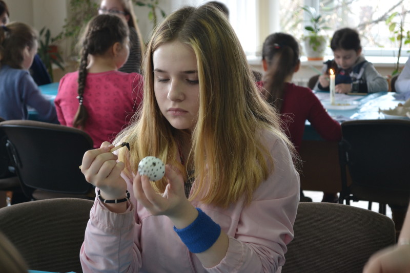 Під час майстер-класу школярі, активна молодь та усі охочі мали змогу навчитися тонкощів писанкарства. Майстриня Ольга Воробей розповіла присутнім про походження української традиції розписувати на Великдень яйця, розкрила деякі секрети техніки писанкарства.