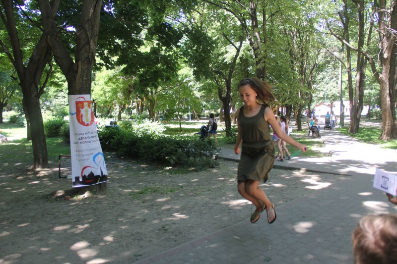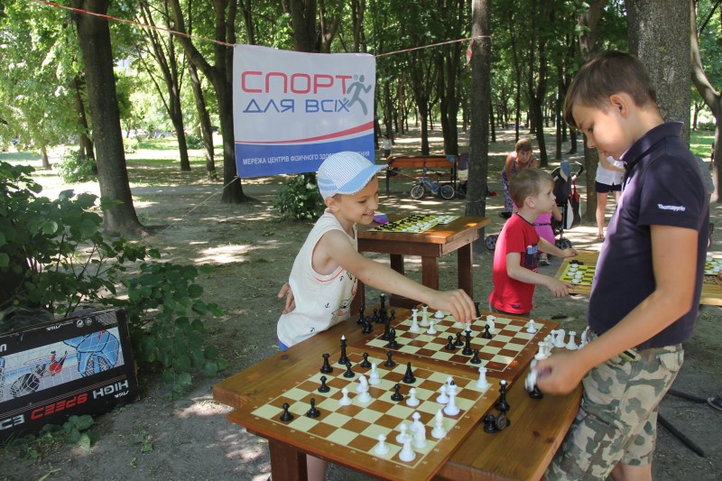 Працівники центру «Спорт для всіх» забезпечили проведення спортивно-розважальної програми, яка включала такі види: змагання з настільного футболу, дартсу, армрестлінгу, перетягування линви, «Диво шашки», «Диво шахи»; конкурси з набивання футбольного м’яча, стрибків на скакалці, «Фризбі», «Влучно в ціль», а також естафети з бадмінтонною ракеткою, «Садіння картоплі», «Котигорошко». Всі охочі мали можливість випробувати свої сили у вищезгаданих змаганнях.