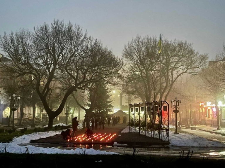 Біля меморіальної стели «Слава Україні! Героям – слава!» запалали вогниками більше сотні свічок. Вони нагадали перехожим про загиблих Захисників України.