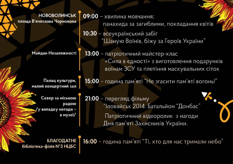 29 серпня Нововолинська громада разом з усією Україною вшановуватиме памʼять загиблих Захисників.