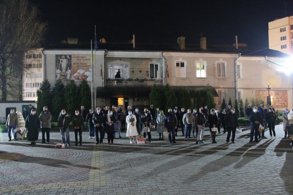 Потому відбулося освячення великодніх кошиків на соборному майдані. Церковна площа не змогла вмістити усіх охочих освятити кошики, тож частина вірян розмістилася на Театральному майдані.