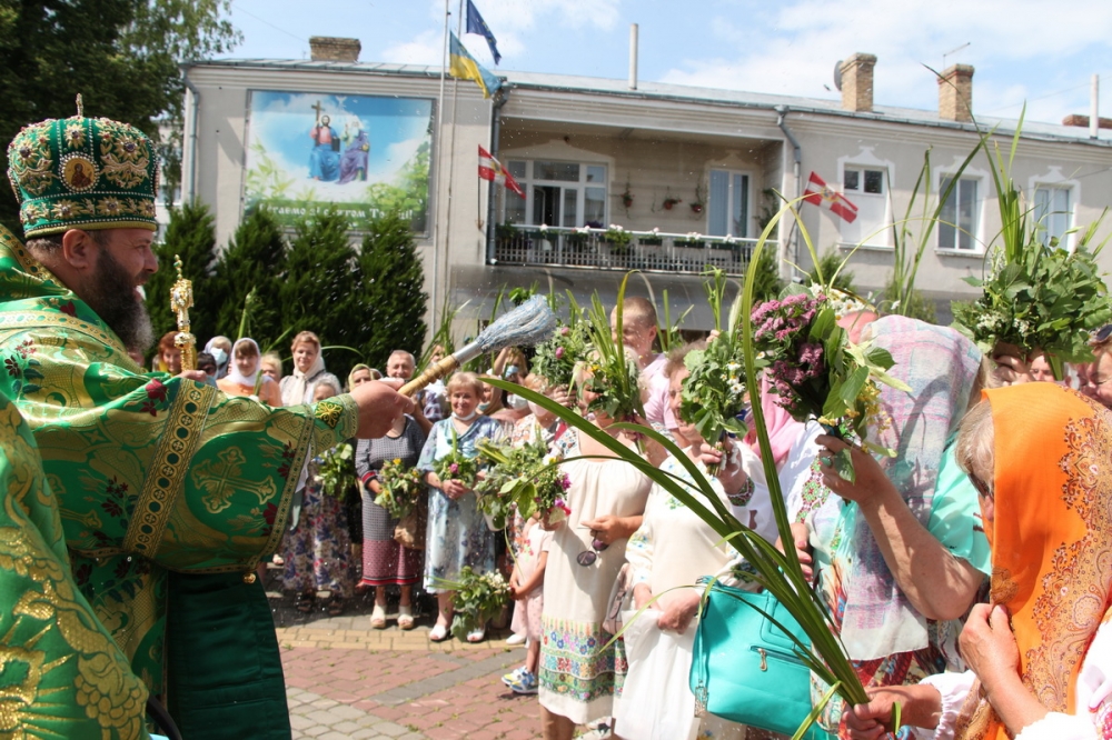 Після Відправи керуючий єпархією на площі перед собором освятив квіти та зелень, які принесли вірні.