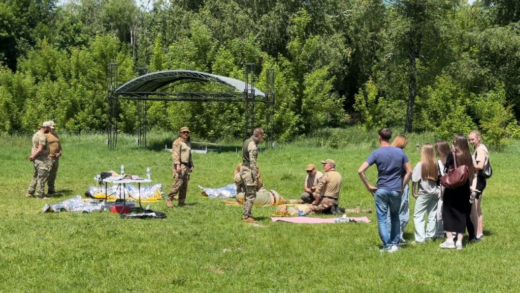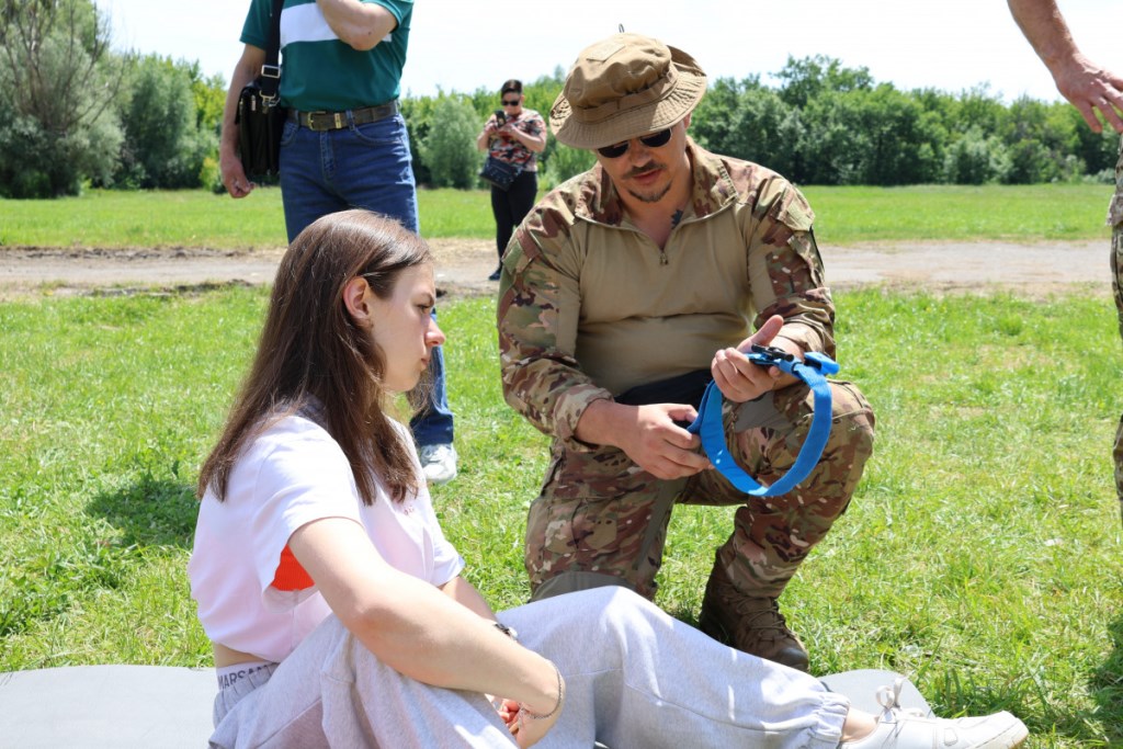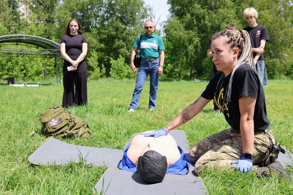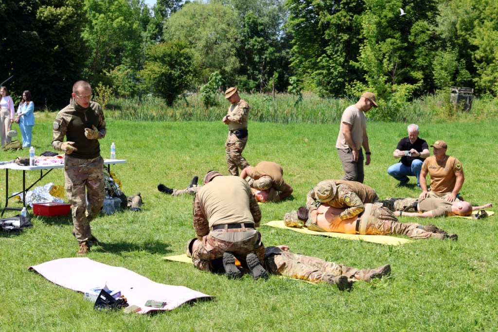 Зокрема, інструктори Центру організували захід на трьох локаціях, де почергово блоками навчали як користуватися турнікетом, аби зупинити кровотечу, як робити непрямий масаж серця, що ключовим елементом серцево-легеневої реанімації (СЛР) до прибуття швидкої допомоги. Також вчились навичкам з накладання пов’язок на різні типи ран, фіксування пошкоджених кінцівок і транспортування постраждалих.