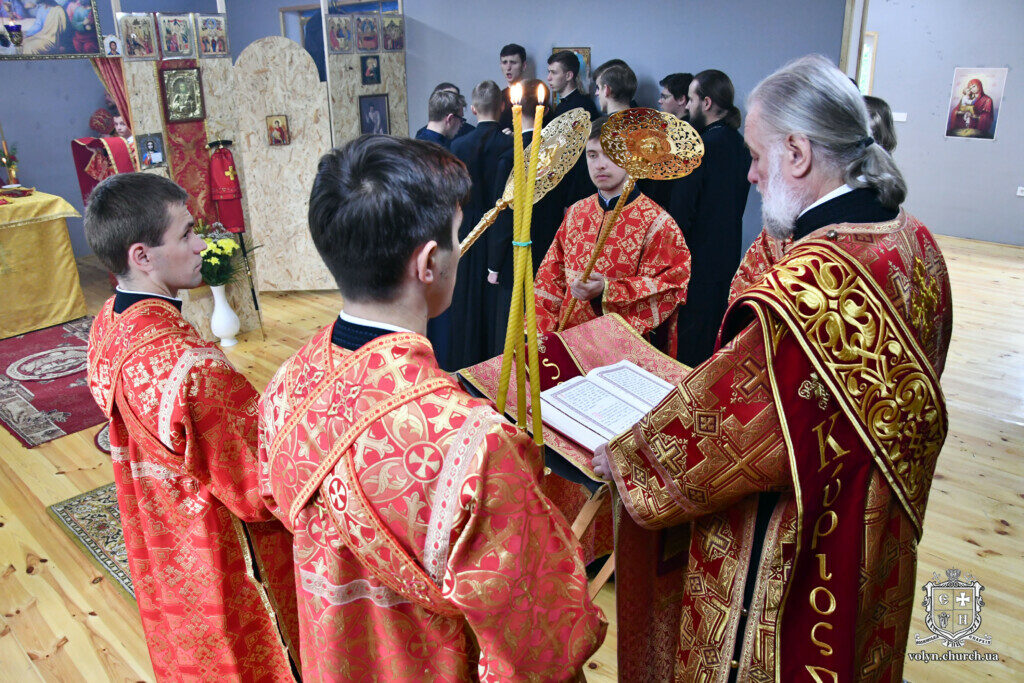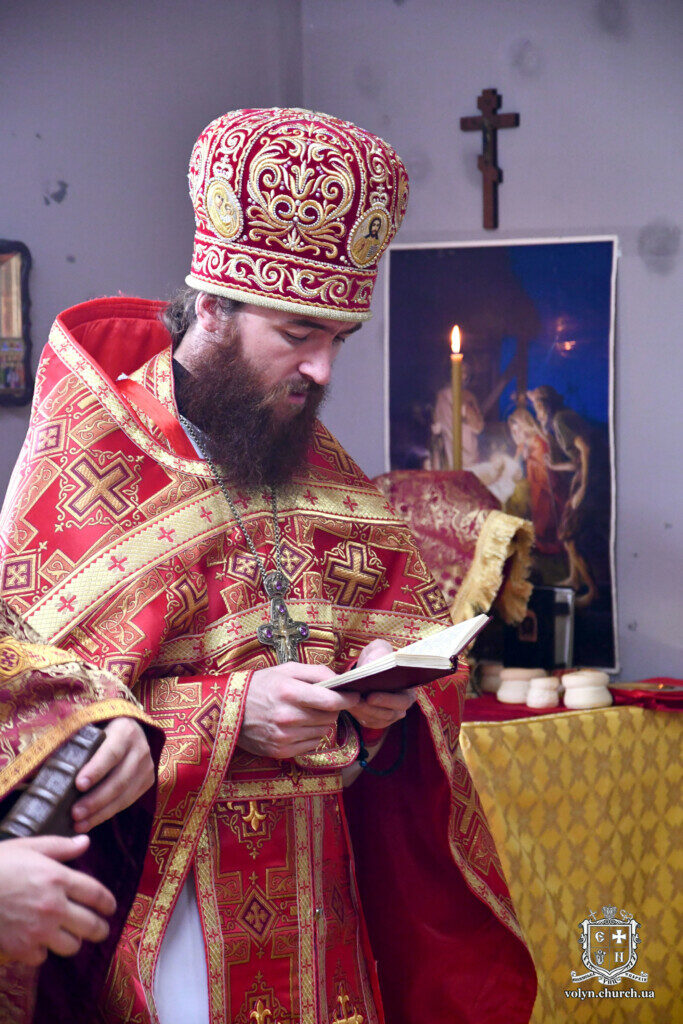 Його співслужили благочинний Луцького кафедрального округу, протоієрей Вадим Лебедь, настоятель Свято-Покровського храму, архімандрит Афанасій (Герман), завідуючий канцелярією єпархії, архімандрит Паїсій (Хомич), настоятель новоосвяченого тимчасового храму і духівник молодіжного об’єднання “Ставрос”, протоієрей Іоанн Піпаш та клірики Волинської єпархії УПЦ МП.