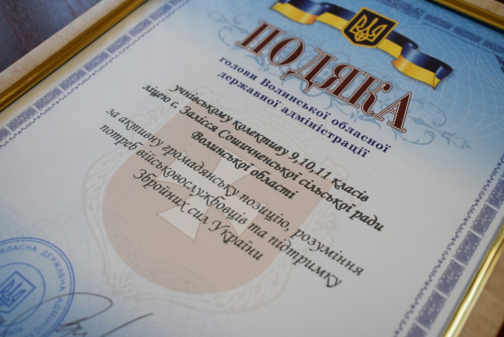 Очільник області Іван Рудницький, отримавши клопотання про відзначення юних благодійників під час свого візиту до громади, передав їм Подяку голови Волинської облдержадміністрації.