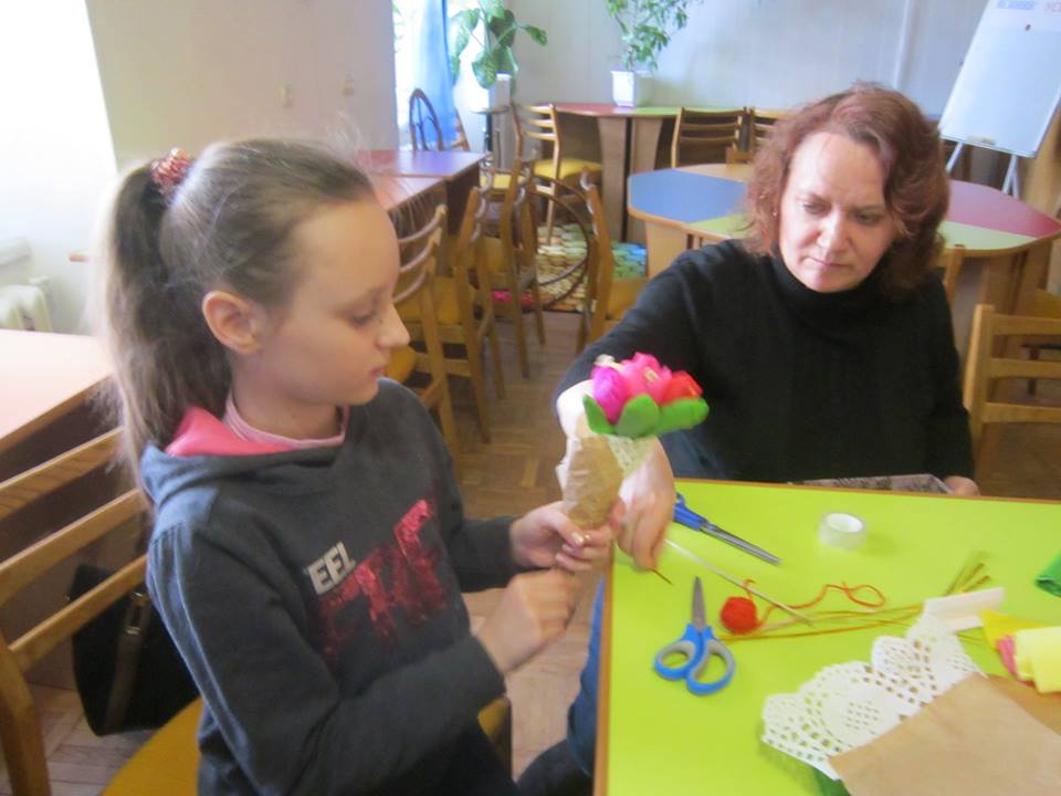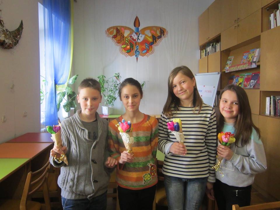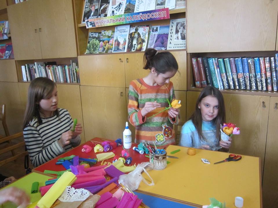 Юні лучани вчились виготовляти паперові букети. ФОТО