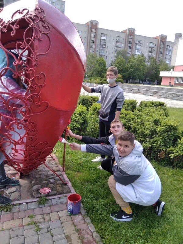 Юні лучани оновили понівечене залізне серце біля РАЦСу
