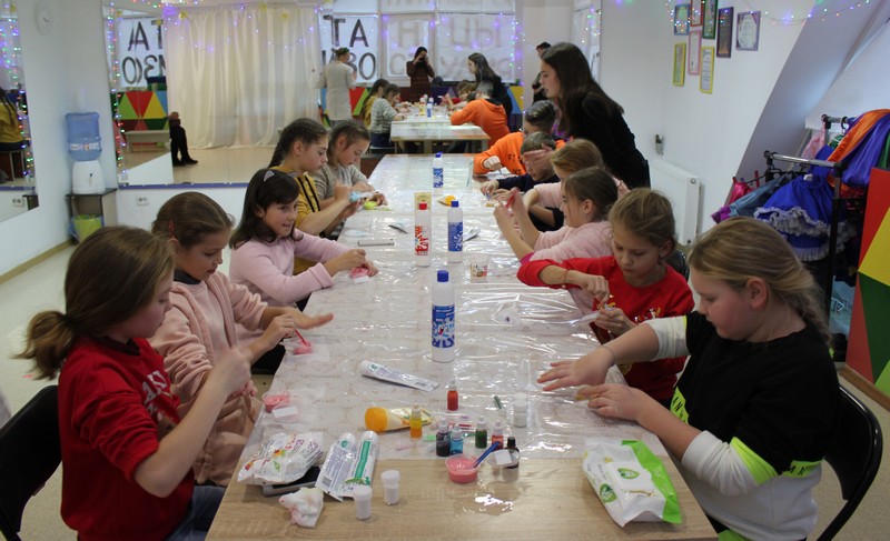А далі на учнів чекала арт-студія «Фантазери» в новозбудованому житловому масиві (дорогою ми оцінили досягнення сучасного будівництва). Майстер-клас з виготовлення слаймів захопив і розвеселив юних художників. А ще було безліч несподіванок, здивувань і відкриттів, які подарувало справжнє шоу експериментів.