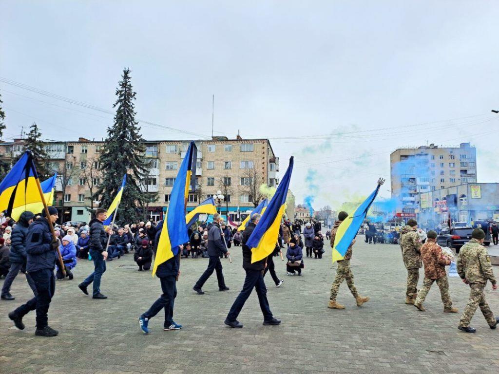 «Сьогодні громада зібралася, щоб провести Дмитра, щоб подякувати молодому воїнові за мужність, честь, його любов до України. За найвищу жертву — віддане життя за свою країну. Щоб подякувати батькам за сина-Героя», — сказав міський голова Ігор Чайка під час громадянської панахиди.