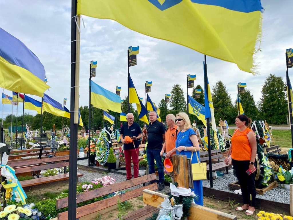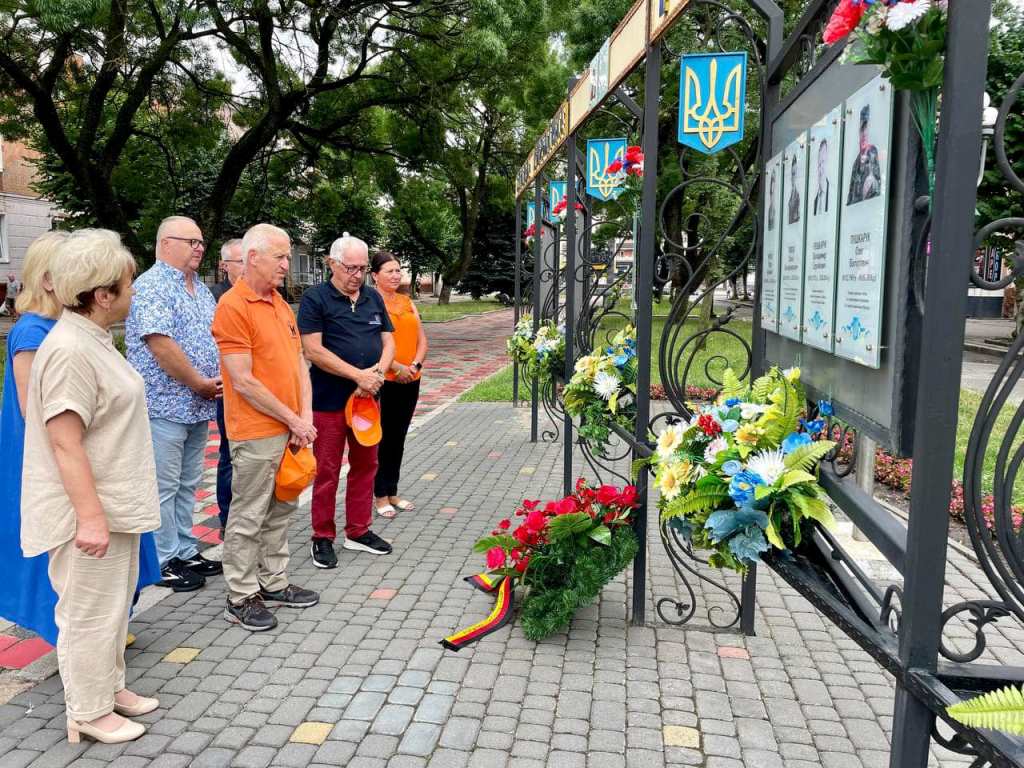 Традиційно члени іноземної делегації долучилися до загальнонаціональної хвилини мовчання о 9:00, спільно вшанували пам’ять наших полеглих Захисників. До меморіальної стели «Слава Україні» Героям Слава!» поклали квіти. Відвідали і могили наших Героїв на місці їхнього останнього спочинку – на кладовищі в районі другої шахти.