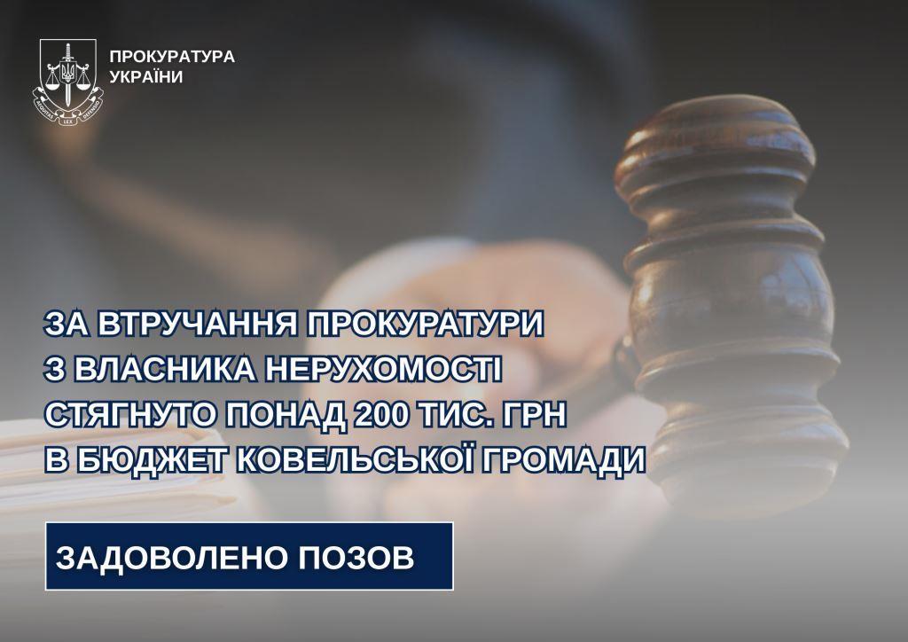 З власника нерухомості стягнули понад 200 тисяч гривень у бюджет Ковельської громади