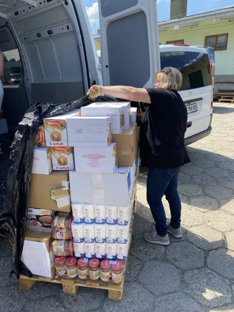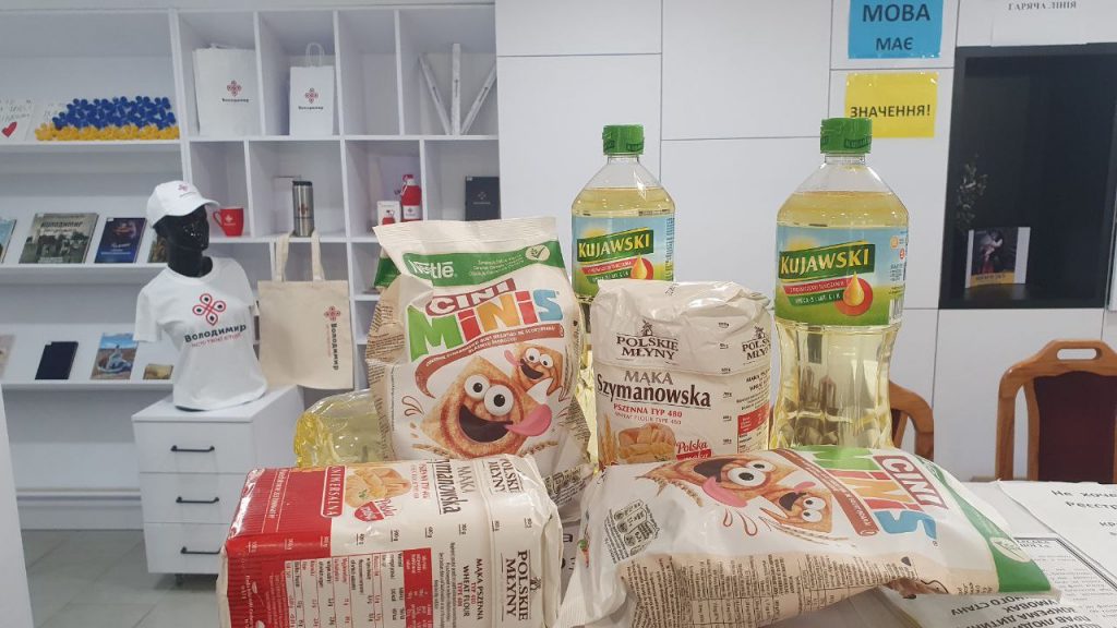 Пластівці, борошно, молоко, олія, снеки, дитяче харчування, енергетики, соки, паштети, цукор та різні крупи направлялися в різні куточки нашої зраненої України. Миколаїв, села та містечка Київської області, Харків, Слов’янськ, Попасна, Авдіївка, Чернігів, Одеса, Ізюм, Маріуполь, Баштанка та інші населені пункти отримали частинку допомоги від наших друзів, зокрема Американської школи у Варшаві. Окрім цього, враховуючи значну кількість внутрішньо переміщених осіб на території громади, координаційним центром було роздано частину продуктів і цій категорії населення.