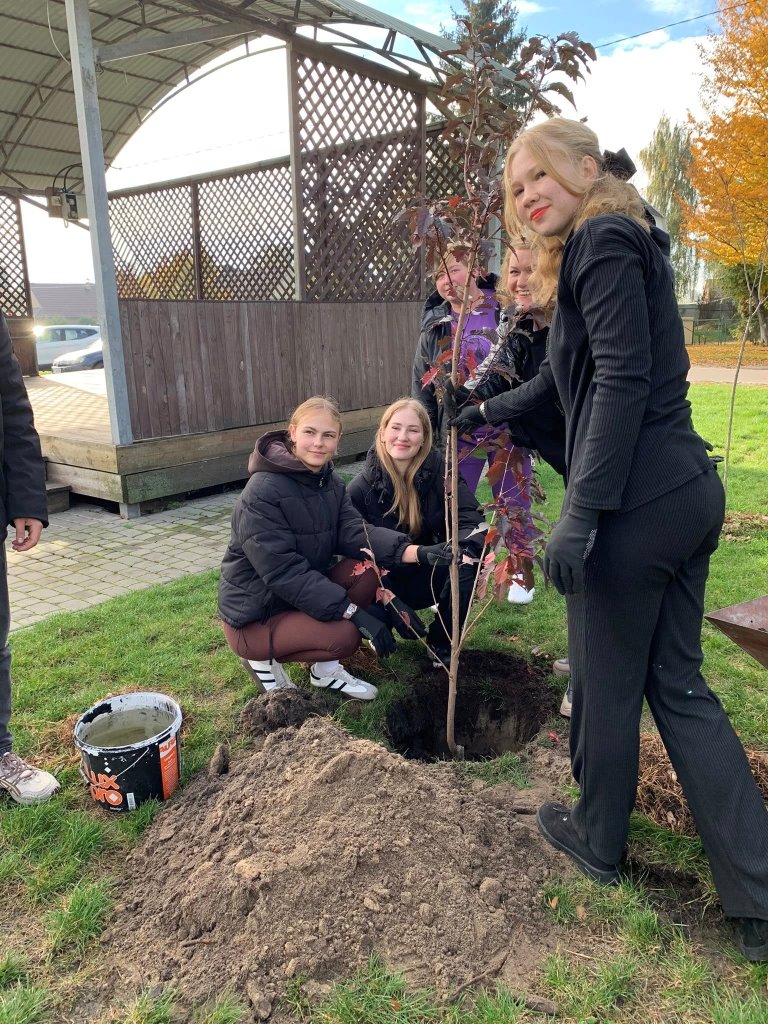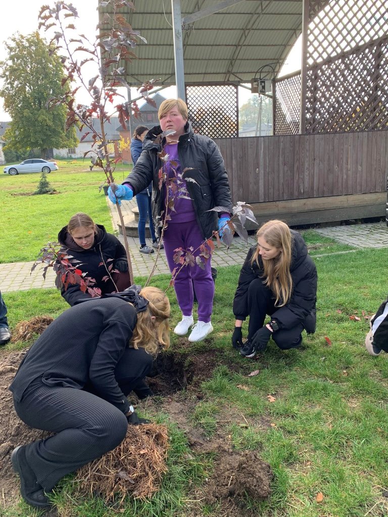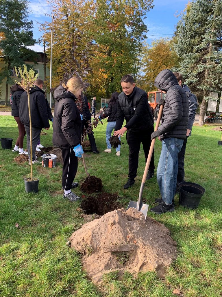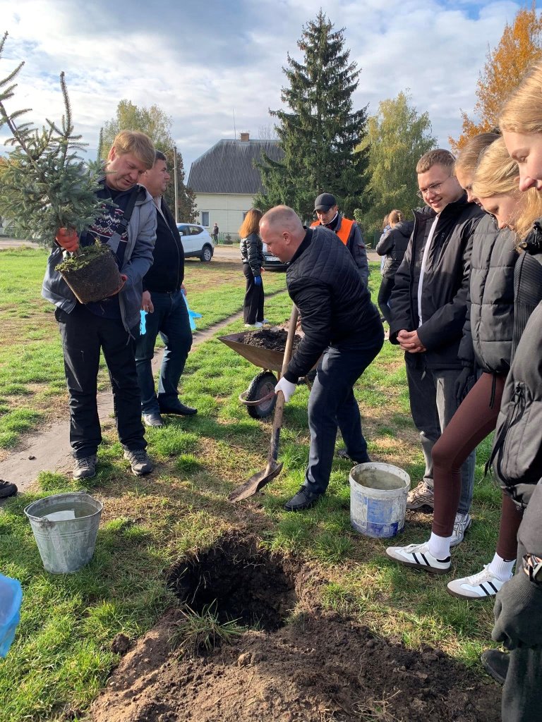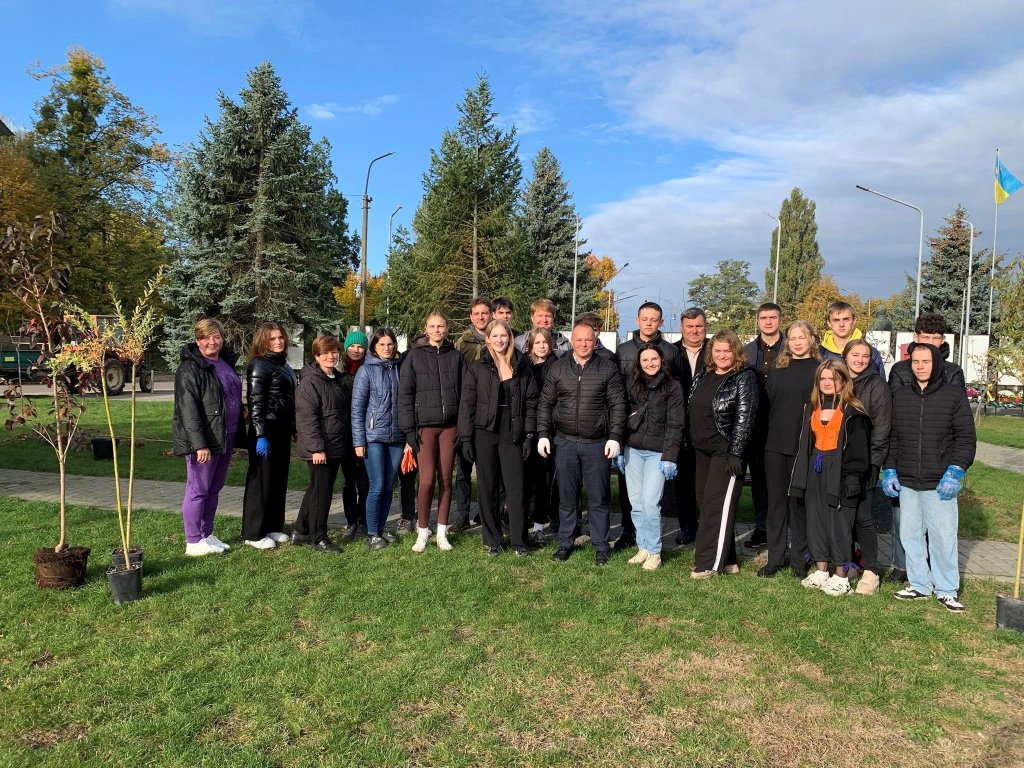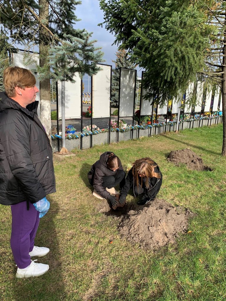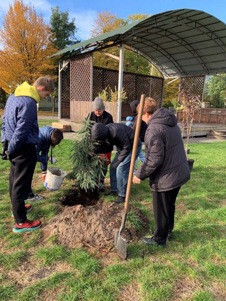 За ці кошти закупили 22 саджанці, серед яких – ялини, сакури, штамбові верби. Сьогодні дерева висадили в селищному сквері та біля пам’ятника землякам.
