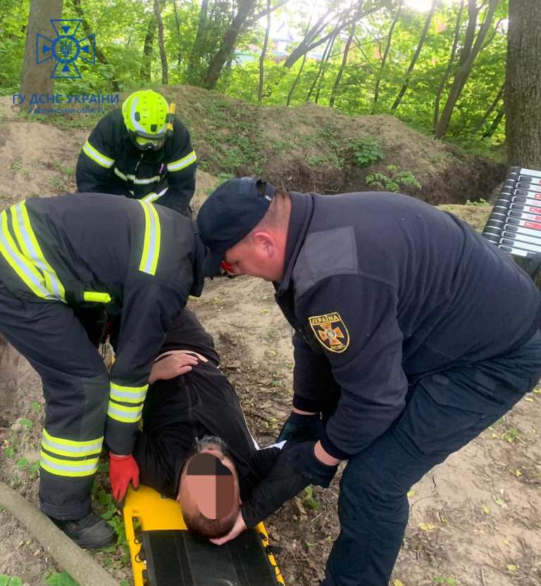 Учора о 19:14 надійшла інформація від служби «103» про те, що в селі Боратин Луцького району чоловік впав в яму глибиною два метри і пошкодив собі ногу. Після прибуття рятувальників інформація підтвердилася, травмовану людину дістали з ями, надали першу домедичну допомогу та транспортували його до автомобіля швидкої медичної допомоги.