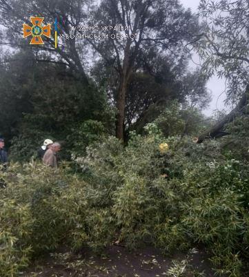 29 серпня о 19:14 до служби порятунку надійшло повідомлення, що внаслідок дії поривчастого вітру на проїжджу частину дороги впало дерево та перекрило рух транспорту на вул. Першотравневій у смт Турійськ. До місця події направили особовий склад чергового караулу 17-ї державної пожежно-рятувальної частини смт Турійськ, які розрізали дерево та відтягнули його на узбіччя.
