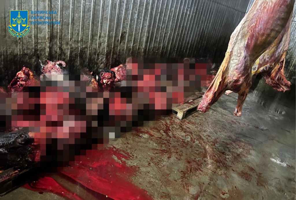 За процесуального керівництва Спеціалізованої екологічної прокуратури Волинської обласної прокуратури припинено незаконну діяльність суб’єкта господарювання на території Луцького району, який без передбаченого законодавством дозволу, в антисанітарних умовах, в порушення санітарних правил і норм, здійснював в межах населеного пункту забій великої рогатої худоби.