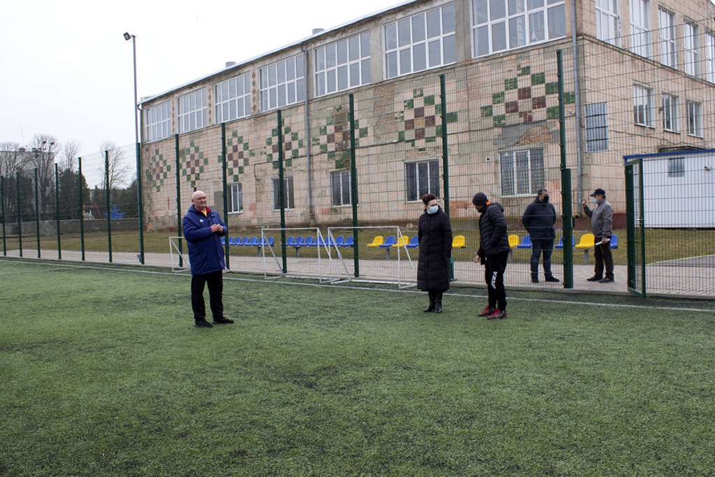 Вікторія Скриннік спільно з директором СОКу “Шахтар” Володимиром Цвидом, керівником міського центру фізичного здоров’я населення «Спорт для всіх» Валентином Бортнічуком, тренером ФК “Шахтар” Юрієм Демусом та депутатом Нововолинської міської ради Володимиром Шаповалом оглянули майданчик зі штучним покриттям та стадіон СОКу “Шахтар”.