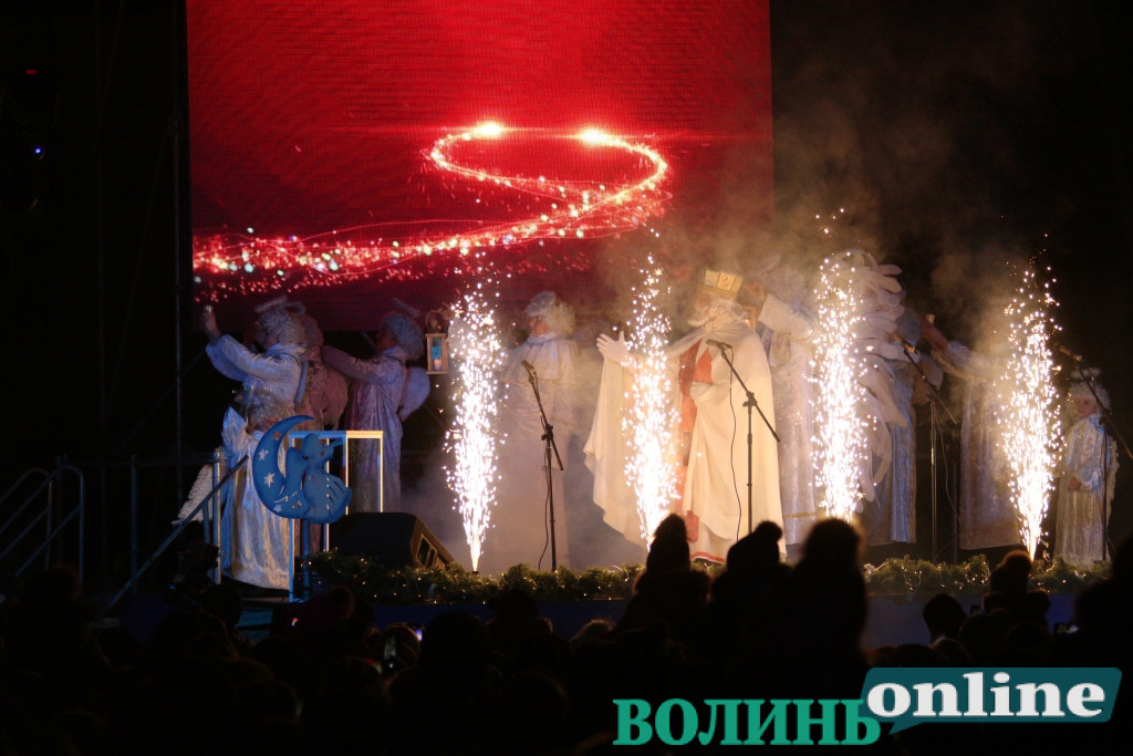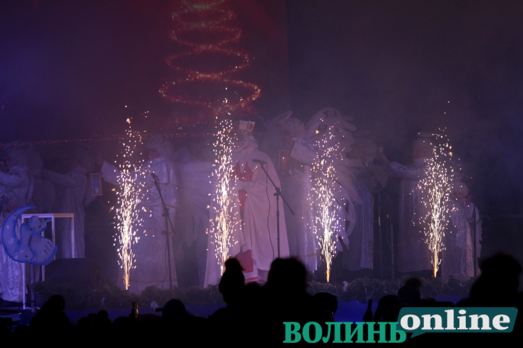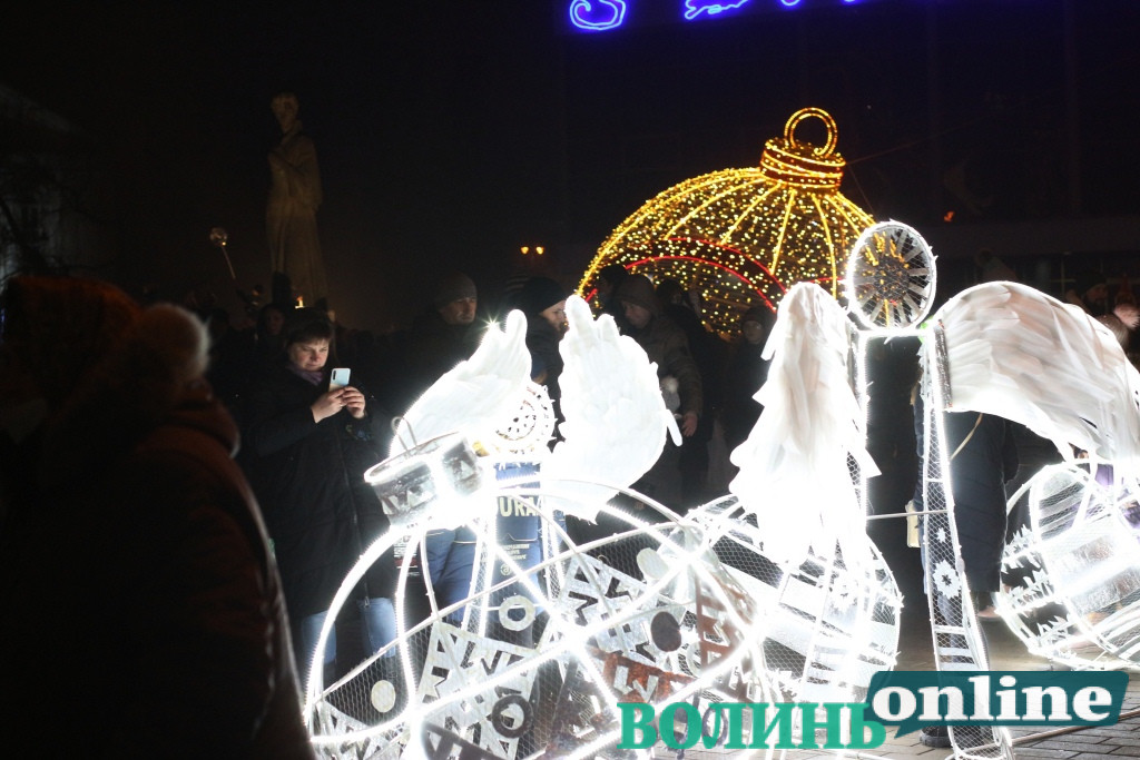 Владу міста та духовенство вітав патрон міста Святий Миколай. Він розповів, що приніс частинку небесного вогню – Вифлеємський вогонь, від якого символічно мільйонами вогників запалили головне у місті тріо різдвяних ялинок. Він зичив, аби в серцях лучан оселилися мир, любов і благодать, щоб дорослі жили за законами Божими та слугували добрим прикладом для дітей, а діти виховувалися у ласці та любові, з повагою до батьків та вчителів. Звертаючись до влади, патрон міста зичив, щоб попри всі труднощі, карантин, негаразди, війну, політичні протистояння усім вистачало мудрості, бажання та уміння, щоб зробити життя одне одного кращим.