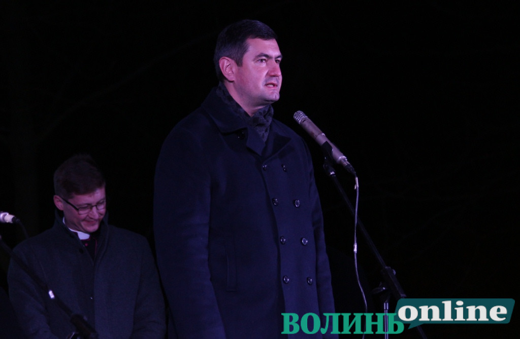 Після урочистого моменту засвічення ялинок до присутніх звернувся Луцький міський голова Ігор Поліщук. Він зауважив, що це свято є особливим для міста, тому що його покровителем є Святий Миколай.