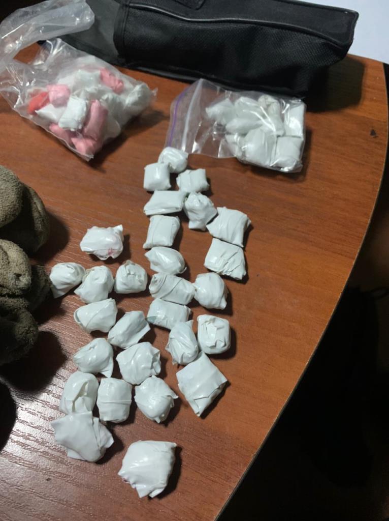 У затриманого вилучено близько 100 пакетів із психотропами, ще понад 80 закладок знайшли розкладеними на місцевості.