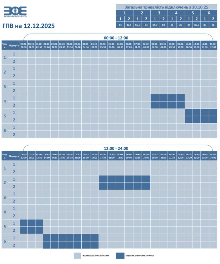 Завтра на Волині діятимуть графіки погодинного відключення світла