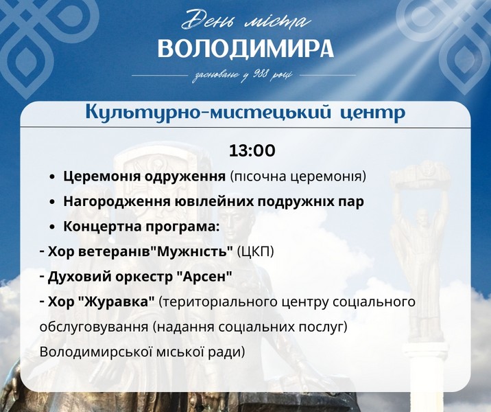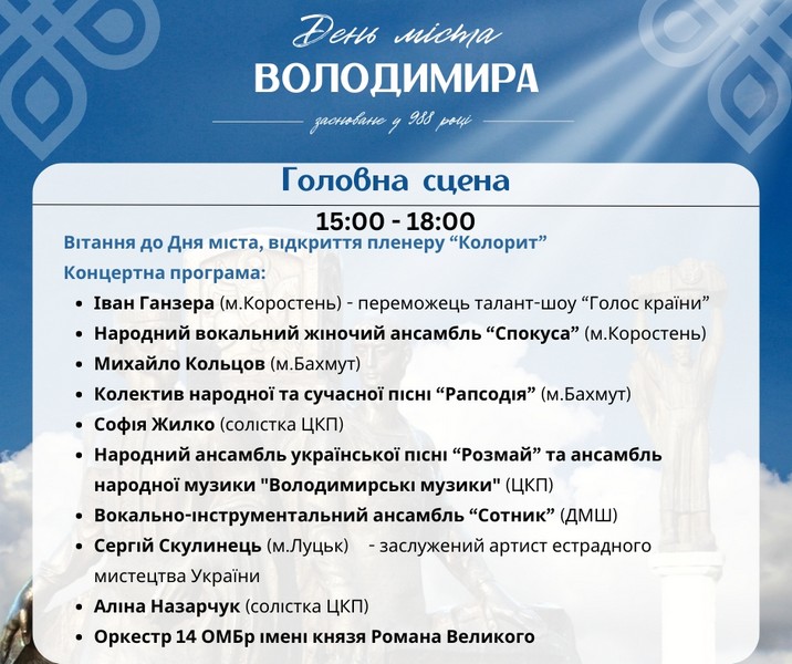 Завтра у Володимирі відбудуться заходи з нагоди Дня міста