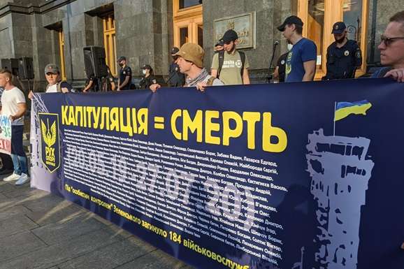 У понеділок, 27 липня, о 19:00 біля Офісу Президента України розпочалася акція протесту проти капітуляції «Наша армія – миру гарант, а Росія – окупант».