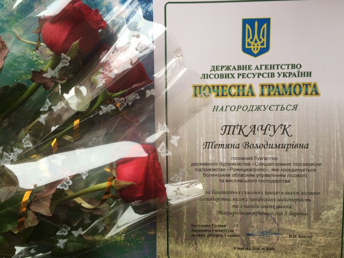 Зокрема, Почесною грамотою Державного агентства лісових ресурсів України відзначили: