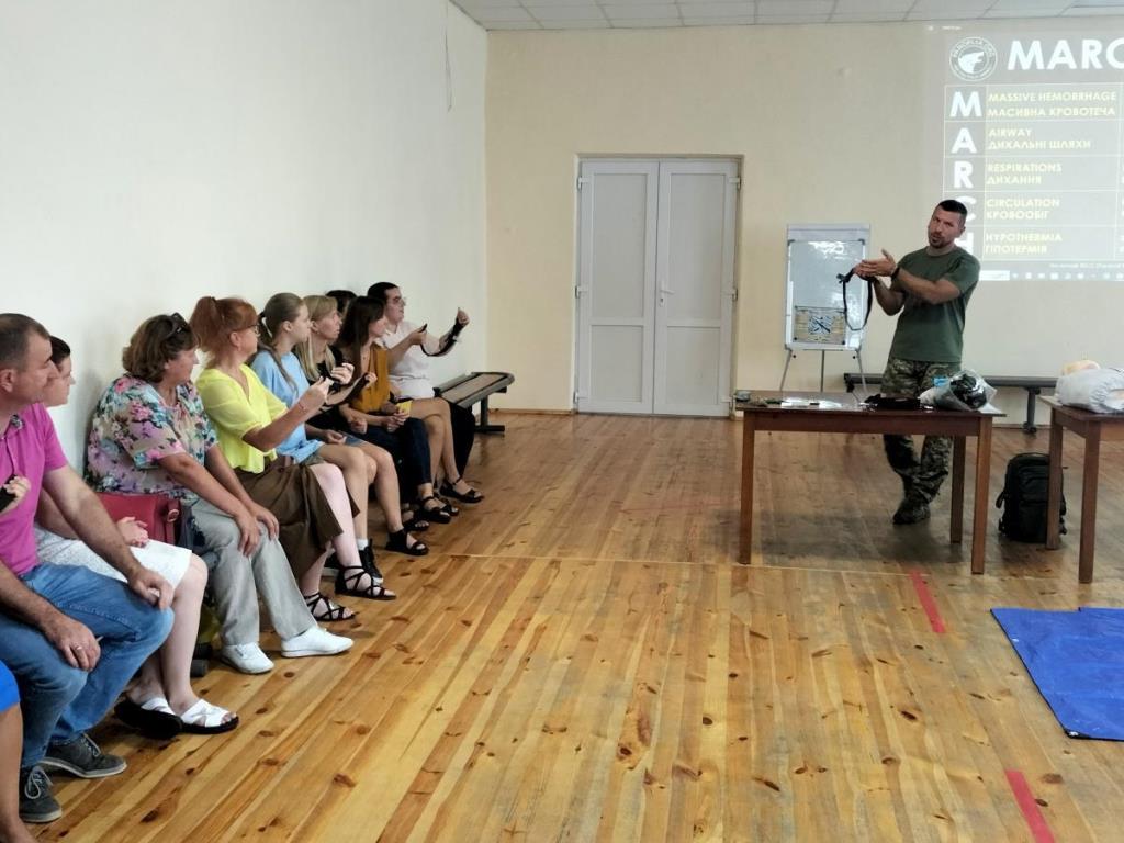 Присутні з цікавістю слухали професійних інструкторів, виконували їх завдання, удосконалювали власні уміння, бо добре розуміють, що у військовий час здобуття таких навичок просто необхідні.