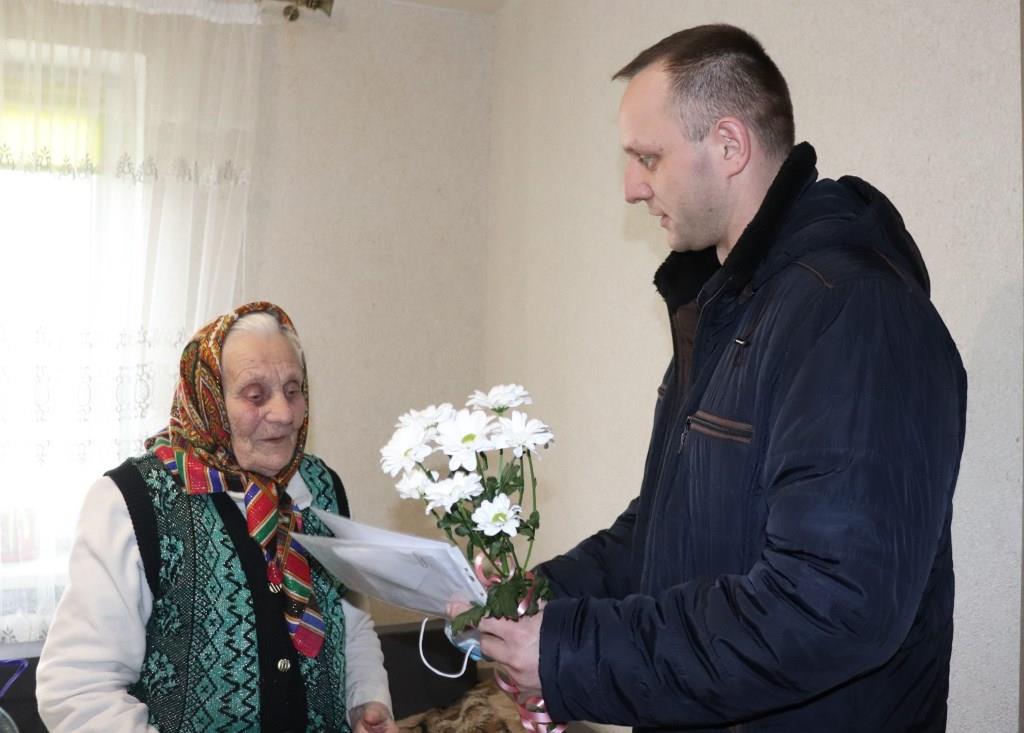 За активну громадську діяльність Іван Юхимюк вручив іменинниці Подяку міського голови, а також квіти. Звертаючись до Марії Семенівни, він зичив їй відсвяткувати ще 100-річний ювілей.