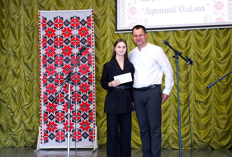 Начальник управління гуманітарної політики Олександр ДЕНИСЮК у своєму виступі також висловив щиру вдячність усім, хто примножує славу громади своїми досягненнями. Він наголосив, що у складний час важливо знаходити сили й мотивацію для розвитку, а саме талановита молодь сьогодні формує майбутнє країни. Вручив подарункові сертифікати на загальну суму 14 000 гривень: