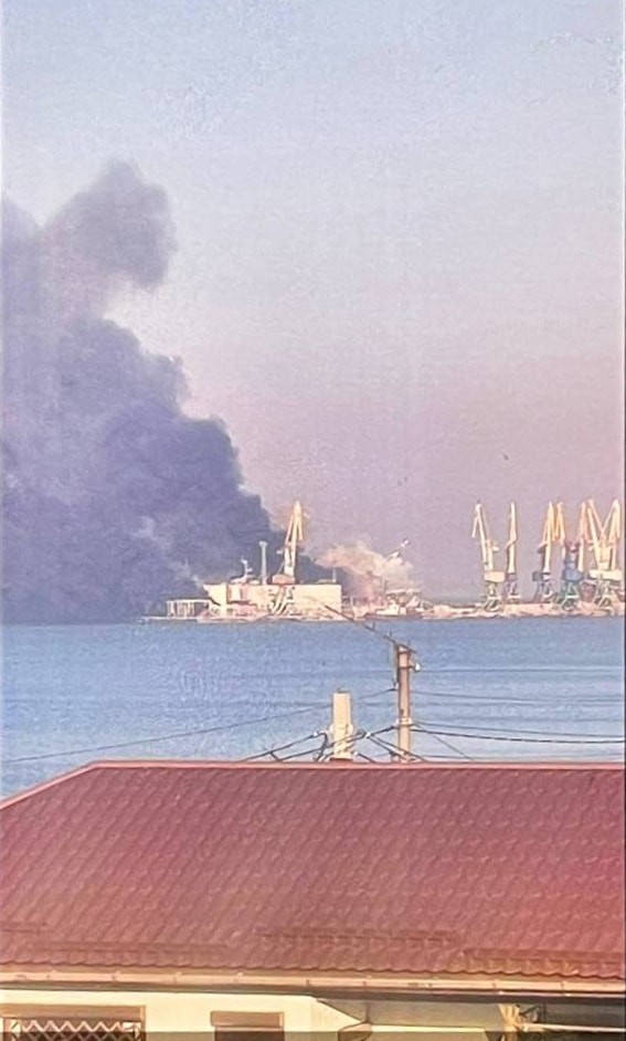 В захопленому рф порту Бердянськ знищили великий десантний корабель «Орск» Чорноморського флоту окупантів. Пожежа перекинулася на інші кораблі, паливо та боєприпаси.