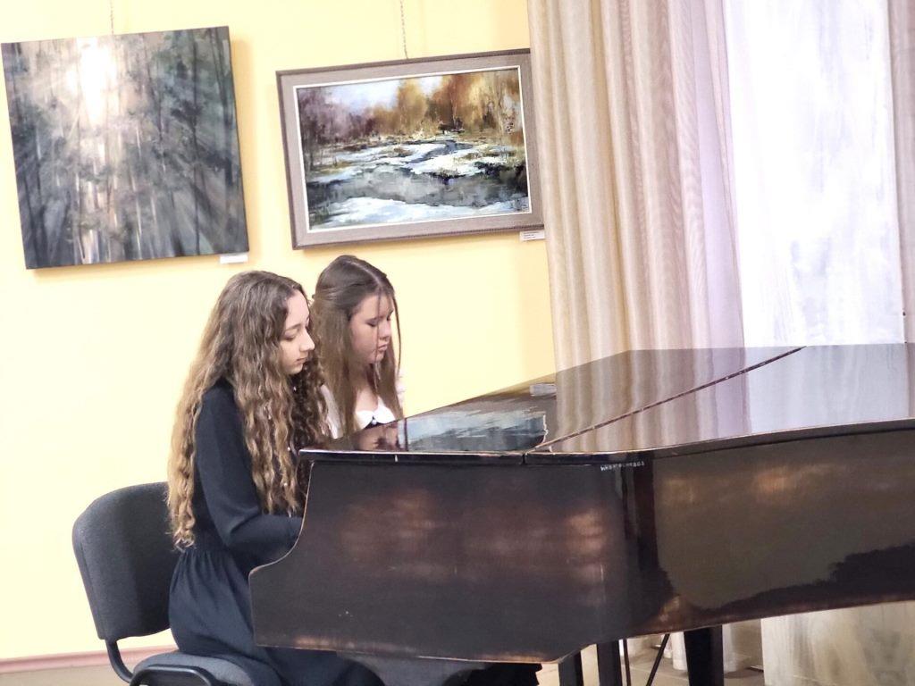 Кожна презентація виставки у нашому місті – це час зустрічей, спілкування, обмін думками, враженнями. Усе це відбувалось під прекрасні мелодії у виконанні учениць школи мистецтв Каміли Дикун та Ніколь Стасюк.
